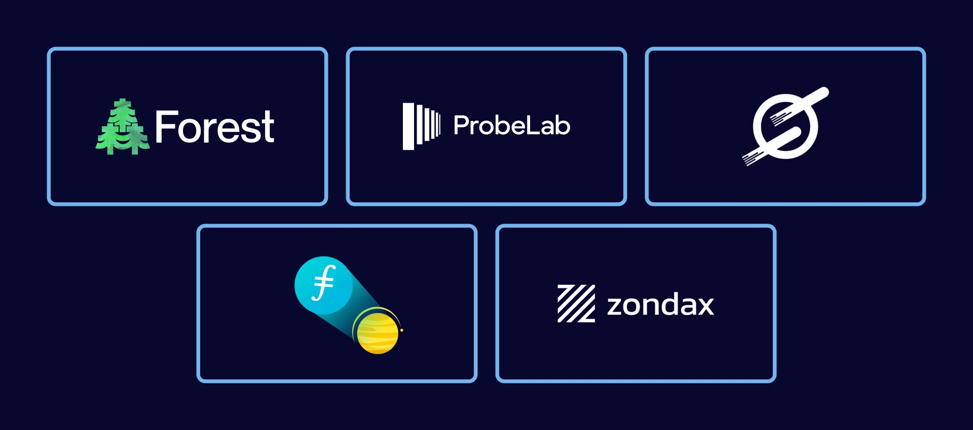 - Zondax: Zondax is a blockchain service provider that delivers services and software solutions for security, data indexing, integration, and protocol engineering. Zondax’s contributions to the Filecoin ecosystem include Beryx API, Filecoin signing tools, Filecoin Ledger App, Assembly script SDK for FVM, and Filecoin Gas.